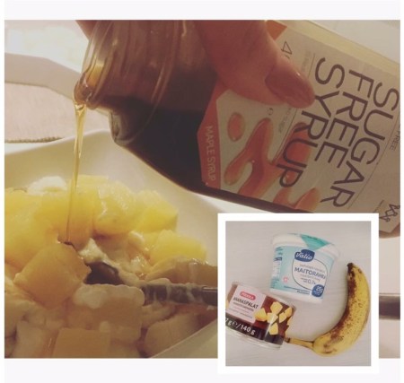 Maitorahka+banaani+ananas+sokeriton makusiirappi